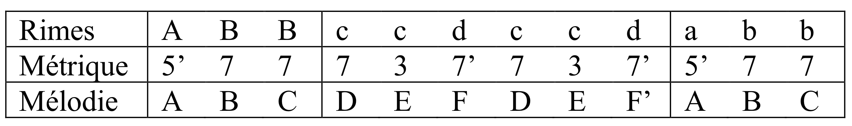 Tableau 2 - Pos qu’ieu vey la fualla, BdT 461.196, W 1v, schéma poético-musical