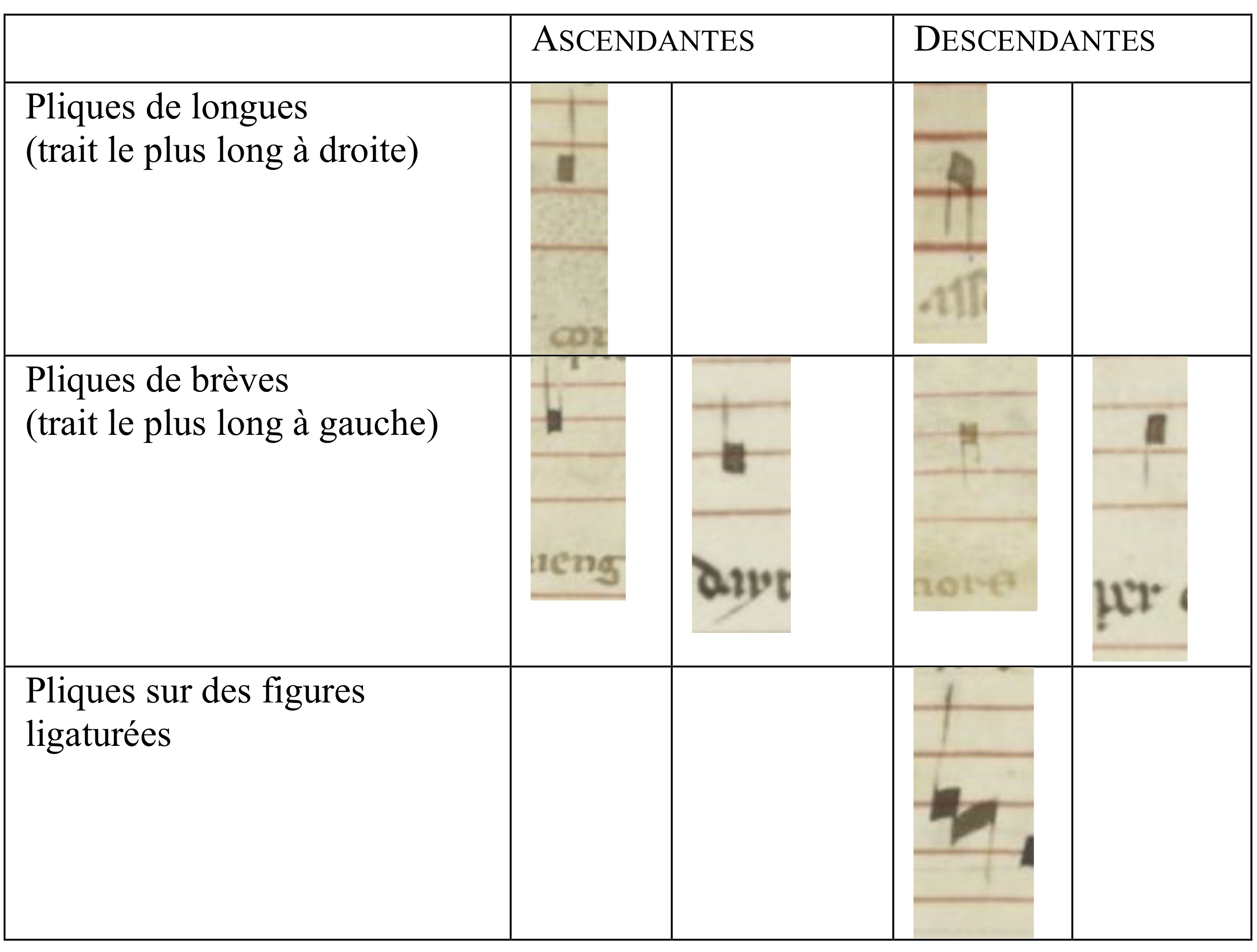 Tableau 6 – Pliques sur des figures simples et ligaturées