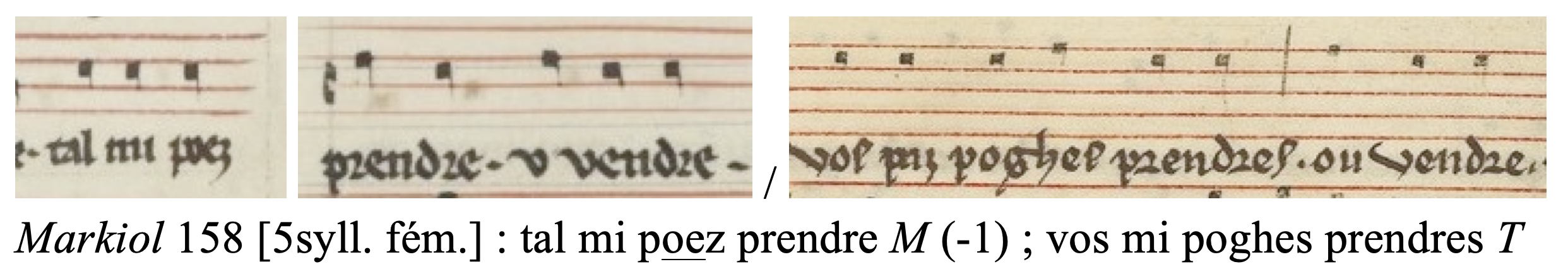 Fig. 6 - Markiol, v. 158 [5 syll. fém] : M, fol. 213r ; T, fol. 73 v