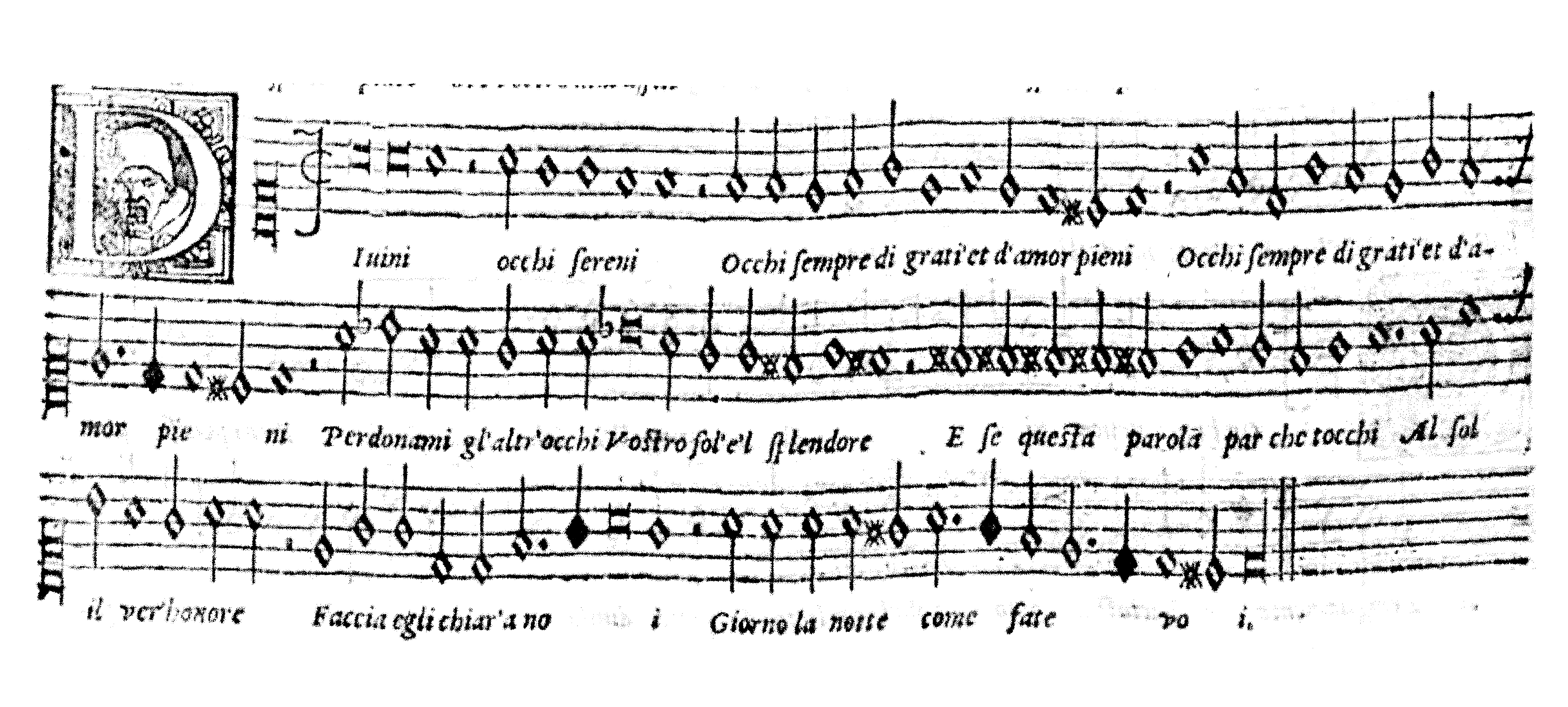- > Fig 7b - I Madrigali del Primo e Secondo Libro di Verdelot, Venezia, Merulo, 1566 (cortesia della Bayerische Staatsbibliothek München)