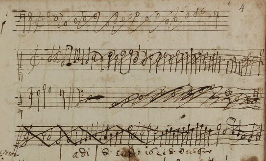 - > Fig. 2 - Ms. C.85, fol. 4r, détail : contrepoints du 4 décembre 1621